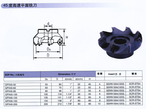 45°高速平面铣刀